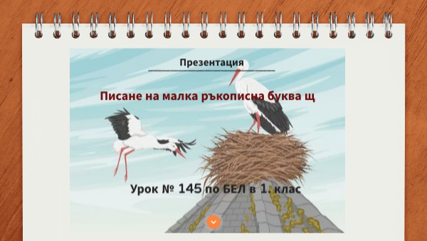 Запознайте се с текста за щъркела. Съставете кратък текст по илюстрацията и го запиши четливо и красиво.