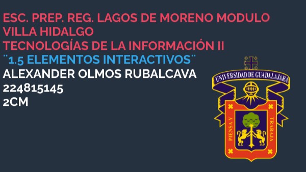 Esc. Prep. Reg. Lagos de moreno modulo villa hidalgo Tecnologías de la información II ¨1.5 Elementos Interactivos¨ Alexander Olmos Rubalcava 224815145 2CM