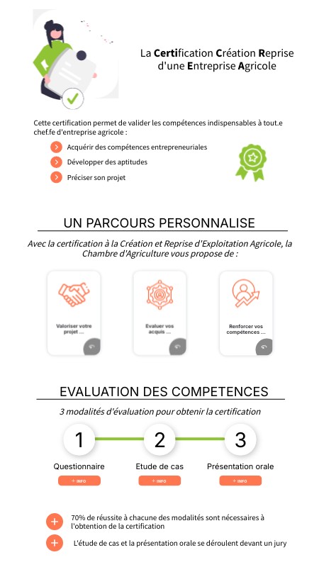 Avec la certification à la Création et Reprise d'Exploitation Agricole, la Chambre d'Agriculture vous propose de :