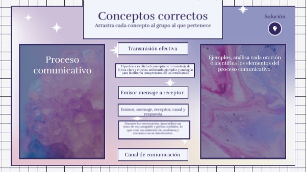 Se llama “Conceptos correctos”. El juego se trata de arrastrar cada uno de los conceptos que se ven en pantalla y agruparlos de acuerdo a la pregunta que este planteada.