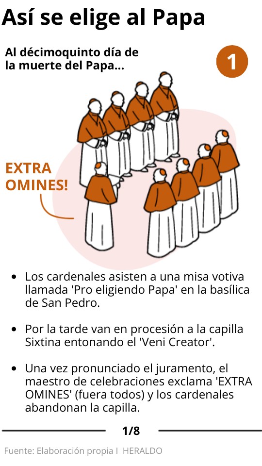 - Una vez pronunciado el juramento, el maestro de celebraciones exclama 'EXTRA OMINES' (fuera todos) y los cardenales abandonan la capilla.