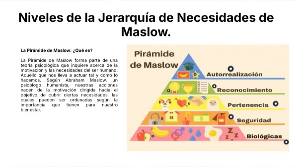 Niveles de la Jerarquía de Necesidades de Maslow.