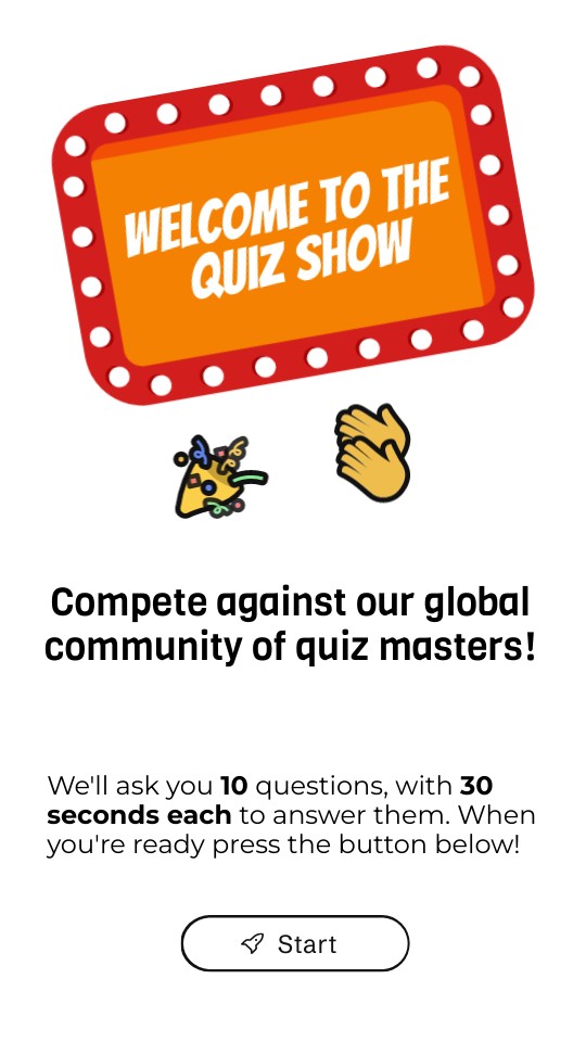 We'll ask you 10 questions, with 30 seconds each to answer them. When you're ready press the button below!