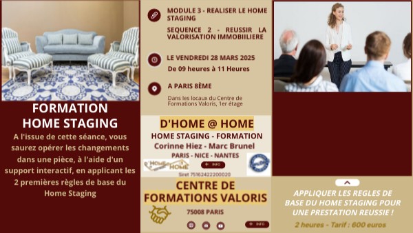 Corinne Hiez, Home Stager professionnelle et formatrice au sein de la société D'Home @ Home, animera cette séance de 2 heures.