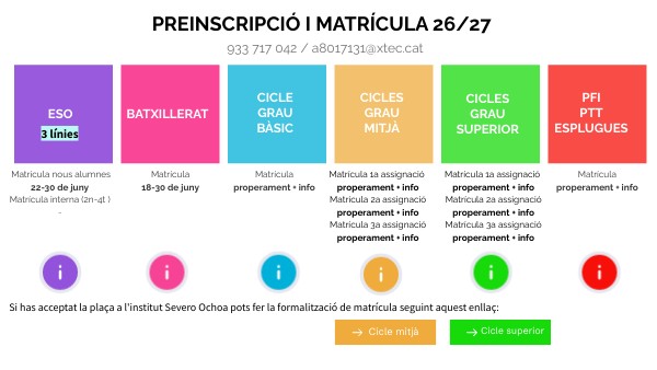 Matrícula 1a assignació properament + info Matrícula 2a assignació properament + info Matrícula 3a assignació properament + info