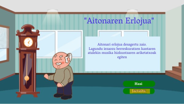 Aitonari erlojua desagertu zaio. Lagundu iezaozu berreskuratzen kantaren atalekin musika hizkuntzaren ariketatxoak egiten