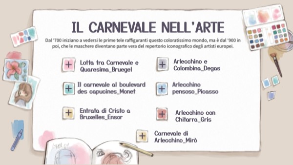 Dal ‘700 iniziano a vedersi le prime tele raffiguranti questo coloratissimo mondo, ma è dal ‘900 in poi, che le maschere diventano parte vera del repertorio iconografico degli artisti europei.