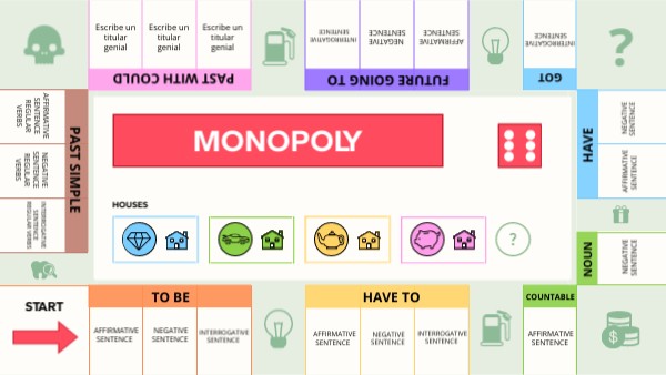 Cada jugador/a debe elegir un color: azul, verde, amarillo o rosa. Así obtiene una ficha para marcar su posición y 10 casas para indicar las propiedades que adquiere a lo largo del juego. Cada jugador debe coger la ficha de su color y colocarla en la casilla de salida. Para empezar a jugar, pincha sobre el dado y mueve tu ficha hasta la casilla que corresponda. En cada casilla debe haber una o varias preguntas. Si la aciertas, coloca una de tus casas en dicha casilla. ¡Enhorabuena, has conseguido una nueva propiedad! Casillas especiales: las casillas con iconos pueden contener sanciones como por ejemplo "El jugador paga impuestos de la luz: pierde 2 casas". ¡Acierta la pregunta para evitar la sanción! Ganará aquel jugador/a que tenga el mayor número de casas sobre el tablero una vez que todas las casillas estén ocupadas.