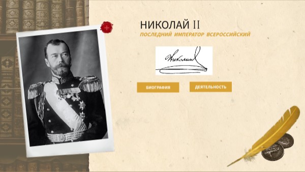 Николай II, старший сын императора Александра III, родился 6 мая 1868 года. Николай получил домашнее образование, но в рамках большого гимназического курса. Лучшие преподаватели подготовили специальные программы, объединяющие университетский курс государственного и экономического отделений юридического факультета. Параллельно он получил образование и по линии Генерального штаба. Все обучение продолжалось 13 лет. Он в совершенстве владел французским, немецким и английским языками.