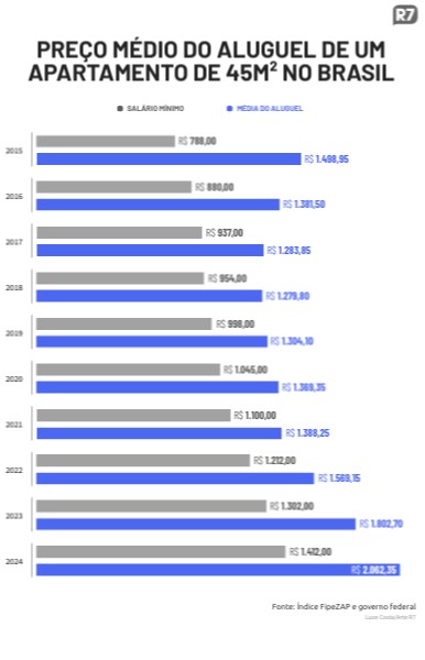 Média anual dos aluguéis cobrados em 45m² no Brasil