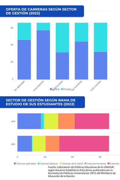 Sector de gestión según rama de estudio de sus estudiantes (2022)