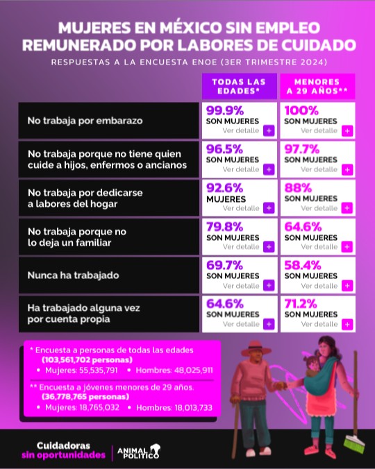 Mujeres en México sin empleo remunerado por LABORES de cuidado