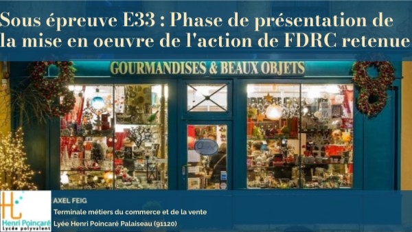 Sous épreuve E33 : Phase de présentation de la mise en oeuvre de l'action de FDRC retenue