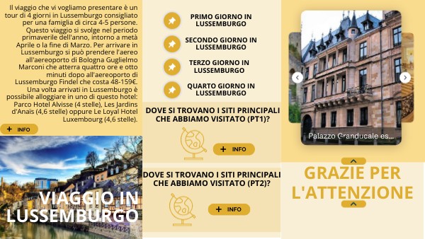 Il viaggio che vi vogliamo presentare è un tour di 4 giorni in Lussemburgo consigliato per una famiglia di circa 4-5 persone. Questo viaggio si svolge nel periodo primaverile dell'anno, intorno a metà Aprile o la fine di Marzo. Per arrivare in Lussemburgo si può prendere l'aereo all'aereoporto di Bologna Guglielmo Marconi che atterra quattro ore e otto minuti dopo all'aereoporto di Lussemburgo Findel che costa 48-159€. Una volta arrivati in Lussemburgo è possibile alloggiare in uno di questo hotel: Parco Hotel Alvisse (4 stelle), Les Jardins d'Anaïs (4,6 stelle) oppure Le Loyal Hotel Luxembourg (4,6 stelle).