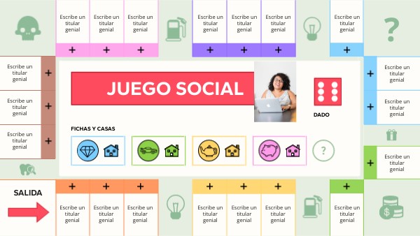 Cada jugador/a debe elegir un color: azul, verde, amarillo o rosa. Así obtiene una ficha para marcar su posición y 10 casas para indicar las propiedades que adquiere a lo largo del juego. Cada jugador debe coger la ficha de su color y colocarla en la casilla de salida. Para empezar a jugar, pincha sobre el dado y mueve tu ficha hasta la casilla que corresponda. En cada casilla debe haber una o varias preguntas. Si la aciertas, coloca una de tus casas en dicha casilla. ¡Enhorabuena, has conseguido una nueva propiedad! Casillas especiales: las casillas con iconos pueden contener sanciones como por ejemplo "El jugador paga impuestos de la luz: pierde 2 casas". ¡Acierta la pregunta para evitar la sanción! Ganará aquel jugador/a que tenga el mayor número de casas sobre el tablero una vez que todas las casillas estén ocupadas.