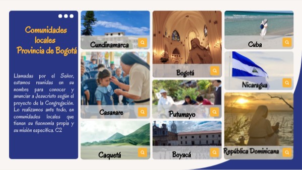 Llamadas por el Señor, estamos reunidas en su nombre para conocer y anunciar a Jesucristo según el proyecto de la Congregación. Lo realizamos ante todo, en comunidades locales que tienen su fisonomía propia y su misión específica. C2
