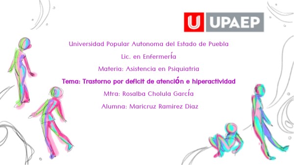 Universidad Popular Autonoma del Estado de Puebla Lic. en Enfermería Materia: Asistencia en Psiquiatria Tema: Trastorno por deficit de atención e hiperactividad Mtra: Rosalba Cholula García Alumna: Maricruz Ramirez Diaz