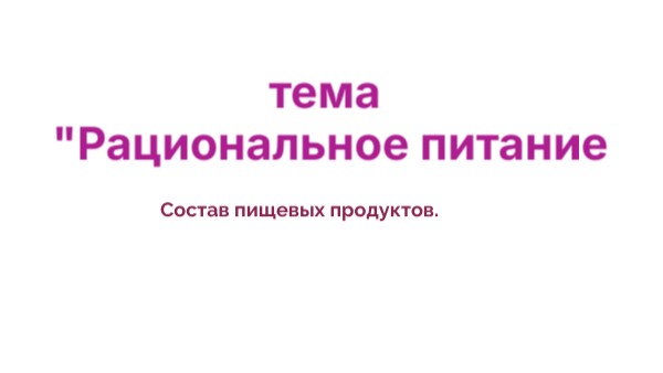 тема "Рациональное питание