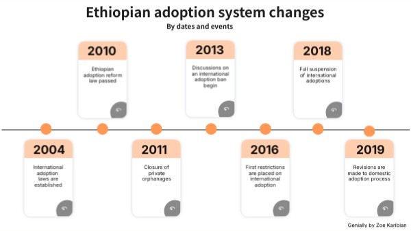 Ethiopia begins formalizing its international adoption process in 2003, according to the United Nations.