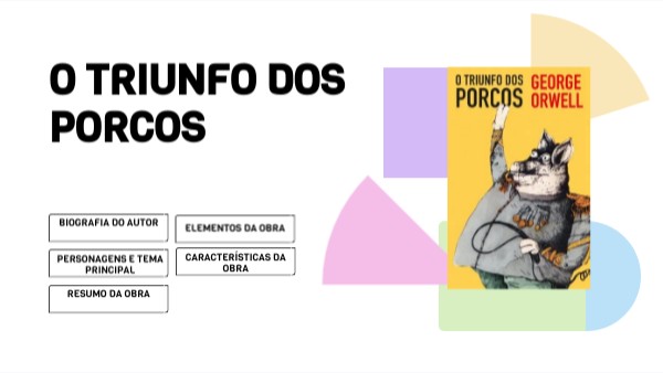 "O Triunfo dos Porcos” satiriza os eventos da Revolução Russa e os regimes totalitários. A história passa-se numa fazenda onde os animais se revoltam contra os humanos opressores, assumindo o controlo da propriedade. Inicialmente, eles estabelecem uma sociedade igualitária, mas, com o passar do tempo, os porcos que lideram a revolução, tornam-se corruptos e tirânicos como os humanos. A obra critica a corrupção do poder e a traição dos ideais revolucionários.
