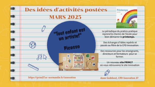 Le périodique du pratico-pratique reprend le chemin de l'école pour bien démarrer le printemps. Des échanges d’idées repérés et passés au filtre de la CPD Innovation. Des ressources pour les enseignants, directeurs et formateurs pour se former. Un nouveau site PRIM27 où vous retrouverez le site Innovation