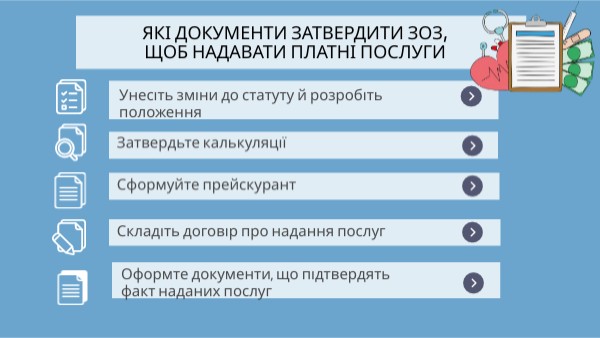Які Документи Затвердити ЗОЗ,щоб надавати платні послуги