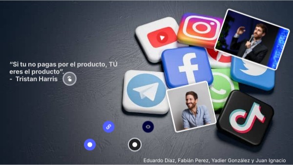 Análisis Eduardo J. Días La frase de Tristan Harris de “Si tu no pagas por el producto, TÚ eres el producto” es muy literal. Es literal ya que como se ve en el documental las redes sociales ganan dinero por las personas que las usan y van creando una copia de ellos para predecir sus movimientos. Además, venden su información para ganar más dinero. Por otro lado, ese es el objetivo de las redes, conseguir que los usuarios la utilicen por más tiempo y no paguen. Por último, nosotros somos manipulados por las redes y somos los productos porque si no hay personas no hay redes.