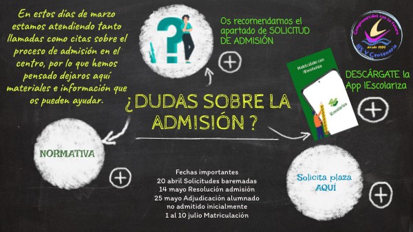 En estos días de marzo estamos atendiendo tanto llamadas como citas sobre el proceso de admisión en el centro, por lo que hemos pensado dejaros aquí materiales e información que os pueden ayudar.