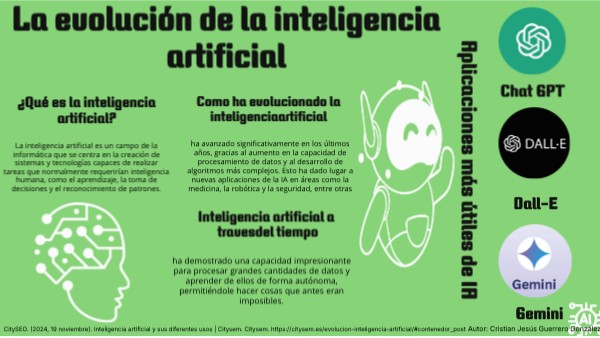 CitySEO. (2024, 19 noviembre). Inteligencia artificial y sus diferentes usos | Citysem. Citysem. https://citysem.es/evolucion-inteligencia-artificial/#contenedor_post