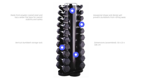 Hexagonal shape and design will prevent dumbbells from rolling away