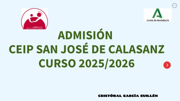 CEIP SAN JOSÉ DE CALASANZ - ADMISIONES 2025/2026