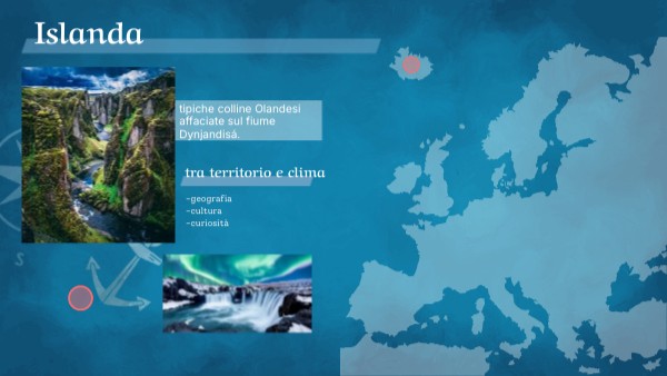 L'Islanda è un'isola vulcanica (con ancora parecchi vulcani attivi) situata al centro dell'oceano atlantico; ha la capitale situata a sud-est affaciata sull'oceano. I ghiacciai occupano 1/10 dell'islanda poichè il clima e molto freddo: è grazie alla corrente del Golfo che influenza le coste e grantascie una temperatura (di poco) sotto lo zero, mentre in estate si può arrivare a circa 14-15 °C.
