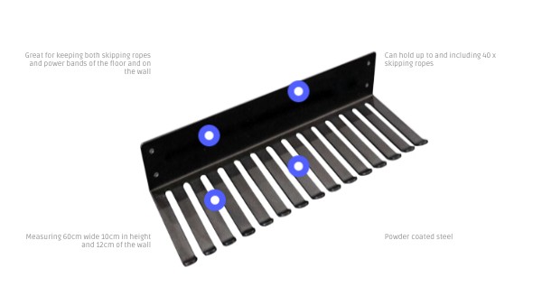 Great for keeping both skipping ropes and power bands of the floor and on the wall