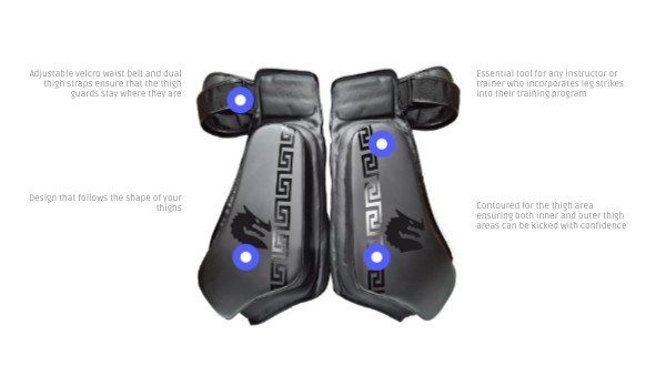 Adjustable velcro waist belt and dual thigh straps ensure that the thigh guards stay where they are