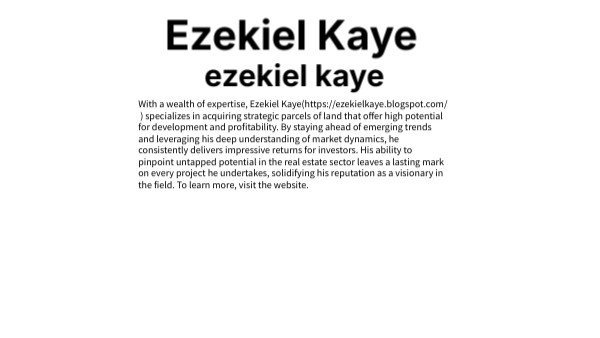 With a wealth of expertise, Ezekiel Kaye(https://ezekielkaye.blogspot.com/ ) specializes in acquiring strategic parcels of land that offer high potential for development and profitability. By staying ahead of emerging trends and leveraging his deep understanding of market dynamics, he consistently delivers impressive returns for investors. His ability to pinpoint untapped potential in the real estate sector leaves a lasting mark on every project he undertakes, solidifying his reputation as a visionary in the field. To learn more, visit the website.