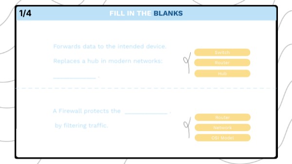Try to identify the OSI Layer before flipping the card. If you get it right, click on the sign ✔, and if you get it wrong, select ✖.