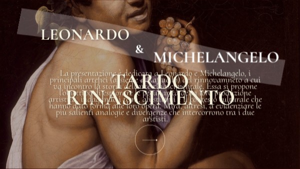 La presentazione è dedicata a Leonardo e Michelangelo, i principali artefici (assieme a Raffaello) del rinnovamneto a cui va incontro la storia dell'arte rinascimentale. Essa si propone l’obiettivo di esplorare le peculiarità della loro produzione artistica, indagando i temi, gli stilemi e il contesto culturale che hanno dato forma alle loro opera. Mira, altresì, a evidenziare le più salienti analogie e divergenze che intercorrono tra i due arstisti.