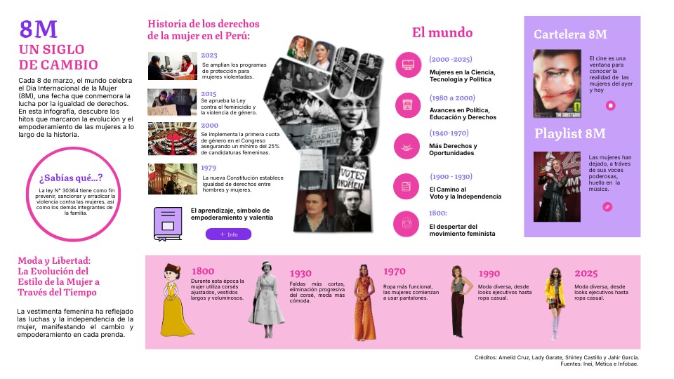 Cada 8 de marzo, el mundo celebra el Día Internacional de la Mujer (8M), una fecha que conmemora la lucha por la igualdad de derechos. En esta infografía, descubre los hitos que marcaron la evolución y el empoderamiento de las mujeres a lo largo de la historia.
