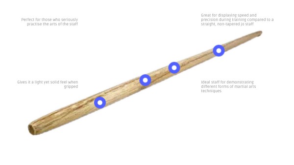 Great for displaying speed and precision during training compared to a straight, non-tapered jo staff