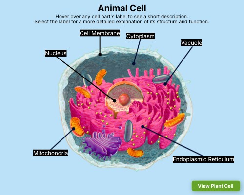 Hover over any cell part's label to see a short description. Select the label for a more detailed explanation of its structure and function.
