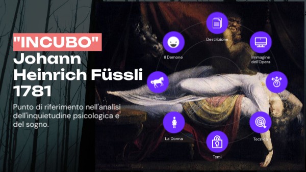 Il "nightmare" come incubo psicologico L'incubo rappresentato da Fuseli riflette un tema ricorrente nelle opere romantiche: l'esplorazione degli aspetti oscuri della psiche umana. Il "nightmare", infatti, è una figura che trae origine dalla tradizione medievale e dalle leggende popolari, dove l'incubo è una creatura soprannaturale che si siede sul petto di chi dorme, causando una sensazione di paralisi e soffocamento, nota come paralisi del sonno. Questa condizione è spesso associata a un'esperienza di angoscia e terrore durante il sonno, un fenomeno che Fuseli rende visibile in modo potente.
