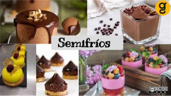 -Los semifríos son aquellas elaboraciones que por sus ingredientes y texturas gelatinizadas parcialmente, se consumen frías pero no heladas. -Los semifríos son elaboraciones que se caracterizan por una textura esponjosa y espumoso que adquieren gracias a su componente principal de nata semi-montada, una crema de base saborizante y un componente espesante que puede ser gelatina en hojas, en polvo o incluso cobertura fundida, que al volver a cristalizar nos da la estructura suficiente para estabilizar el producto. -Se pueden presentar de dos maneras: *En forma de crema dentro de un recipiente o vaso. *En forma de pastel o tarta. -Los semifríos se pueden congelar una vez elaborados, con la se consiguen dos efectos.