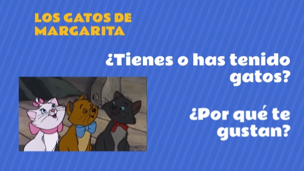 1. ¿Cuántos gatos tiene Margarita? 2. Ennumera los lugares en los que está cada uno de los gatos 3. ¿Cómo crees que se comportan los gatos? ¿Por qué? 4. ¿Qué nombres les pondrías a cada uno de los gatos de Margarita?
