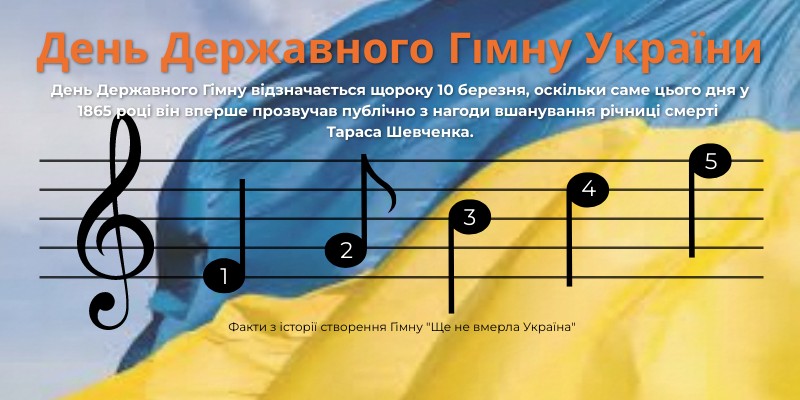 День Державного Гімну відзначається щороку 10 березня, оскільки саме цього дня у 1865 році він вперше прозвучав публічно з нагоди вшанування річниці смерті Тараса Шевченка.