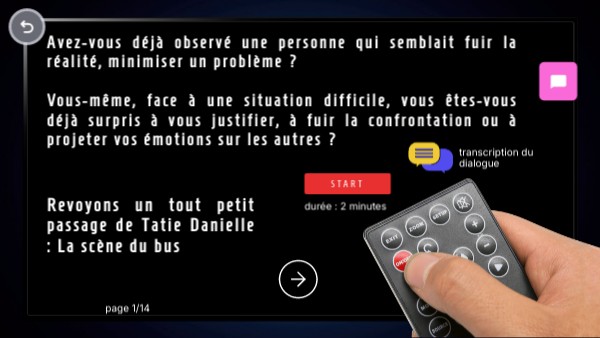 Maintenant que vous avez la théorie, passons à la pratique. Au besoin, regardez à nouveau l'extrait du film et/ou lisez la transcription du dialogue. Puis, démarrez le QCM