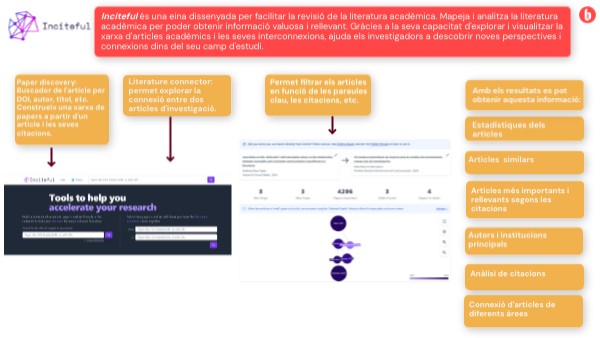 Inciteful és una eina dissenyada per facilitar la revisió de la literatura acadèmica. Mapeja i analitza la literatura acadèmica per poder obtenir informació valuosa i rellevant. Gràcies a la seva capacitat d'explorar i visualitzar la xarxa d'articles acadèmics i les seves interconnexions, ajuda els investigadors a descobrir noves perspectives i connexions dins del seu camp d'estudi.