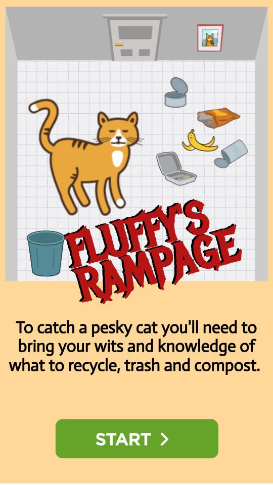 Congratulations! You successfully caught Fluffy and know better what you should recycle, compost or trash! Thanks for playing!