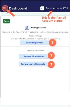 This buttton is placed here ONLY when you first sign in and will be removed once you start using the Portal. *You can access your Employee List via Portal Settings in the Side Menu.