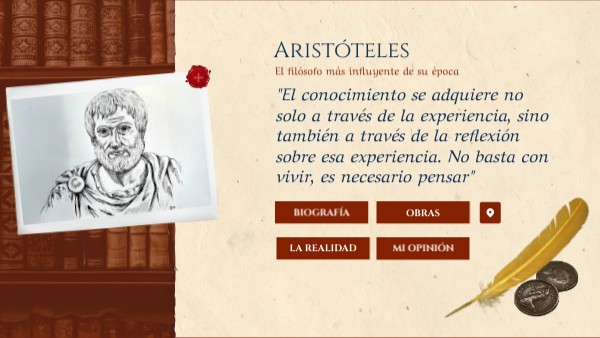 Sinceramente, estoy de acuerdo con las bases de Aristóteles respecto a la vida, ya que una de las mejores fuentes de conocimiento (si no la mejor) es la experiencia, y no podemos negar que el hombre forme Estados para vivir en comunidad. Aunque el resumen de sus pensamientos se queda algo corto, la verdad es que sus ideas son muy complejas (por lo he estado investigando) y, en ocasiones, difíciles de entender. También creo, que, aunque ha influido en muchas áreas del conocimiento, a su trabajo tampoco hay que darle la importancia que se le da en universidades o institutos, ya que, como dato curioso, diré que una vez propuso que en la boca de las mujeres había menos dientes que en la delos hombres. Además, sus pensamientos no serían aceptados hoy en día, ya que creía en la superioridad del hombre sobre la mujer, y en la del hombre griego sobre otros pueblos. Continuando, no estoy muy de acuerdo con su hilemorfismo ni con su teoría sobre la realidad, ya que no creo que haya una fuerza que controle el destino de toda la materia (término cuya existencia acepto y respaldo, obviamente, dentro de su significado científico). Para terminar, diré por qué no apoyo esto: no tiene ninguna base científica, y si "medio acepté" las ideas de Platón fue únicamente porque la ciencia permitía la existencia del mundo de las Ideas, al contrario que en este caso.