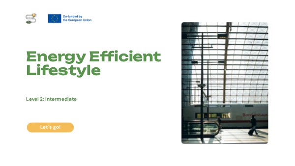 Level 2 of the E-lit Adults Energy-Efficient Lifestyle course builds on foundational knowledge by exploring practical, real-world strategies for reducing energy consumption and making sustainable choices in everyday life. Learners will discover how to optimize energy use in transportation, make informed purchasing decisions, adopt energy-efficient leisure and travel habits, and minimize the digital carbon footprint. This level provides actionable insights into smart technologies, eco-conscious shopping, and sustainable digital habits, empowering participants to integrate sustainability seamlessly into their routines. By applying these strategies, learners will reduce costs, lower environmental impact, and contribute to a more energy-efficient society.